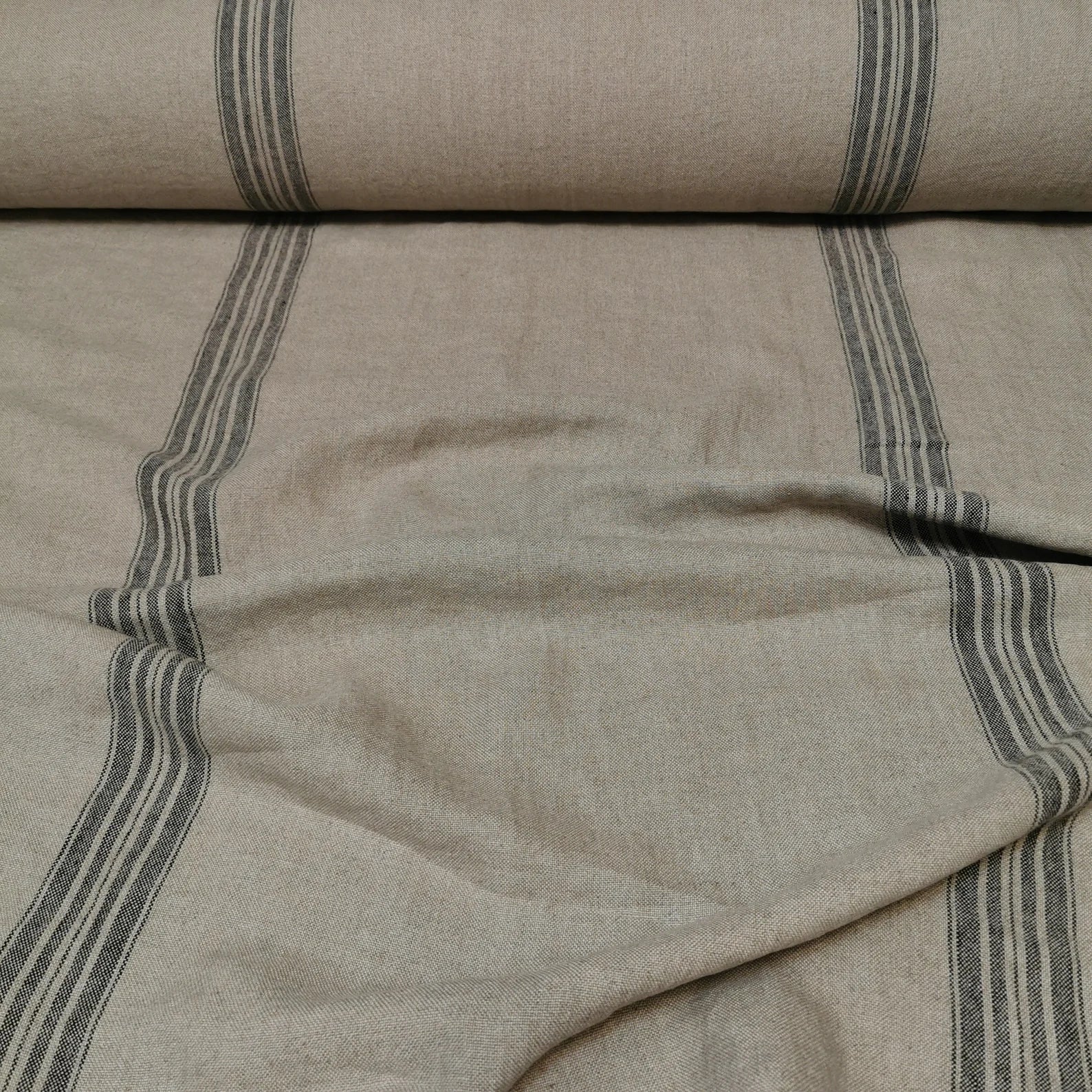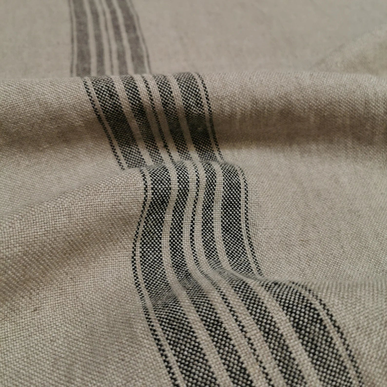 European Pre-softened Linen Black Stripe